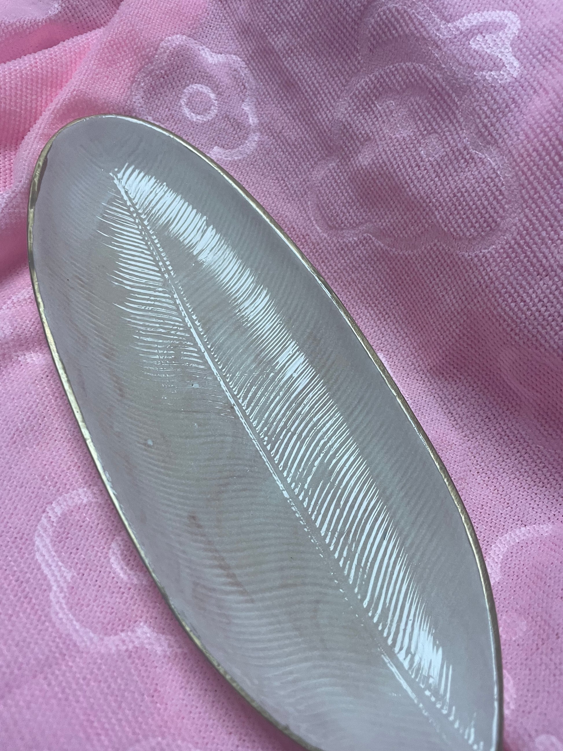Subtiel, sierlijk en net een tikkeltje magisch — het FeatherGlow schaaltje is het ultieme accessoire voor de main character in elke ruimte. Dit elegante schaaltje, gevormd als een dun veertje, is handgemaakt van hoogwaardig Acrystal en afgewerkt met een verfijnd gouden randje dat zacht het licht vangt.