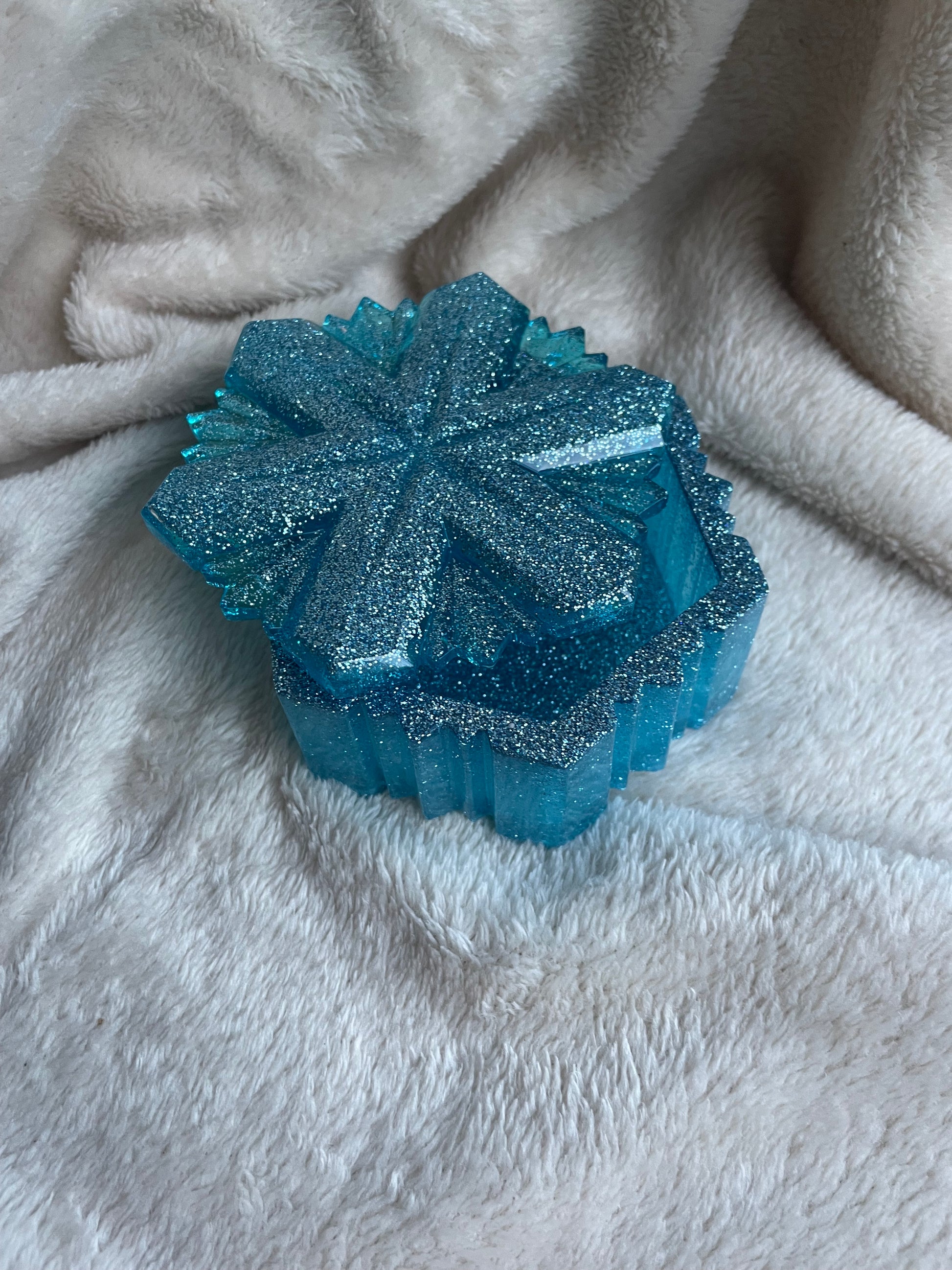 Bewaar je kleine schatten in stijl met de Crystal Frost Box – een uniek handgemaakt bakje met deksel van hoogwaardig epoxy, ideaal als kerstdecoratie! Dit sierlijke doosje is geïnspireerd op de pracht van ijskristallen en heeft de vorm van een delicate sneeuwvlok. Zowel het bakje als het deksel zijn volledig uitgewerkt in kristalachtige details, waardoor het lijkt alsof het rechtstreeks uit een winterwonderland komt.