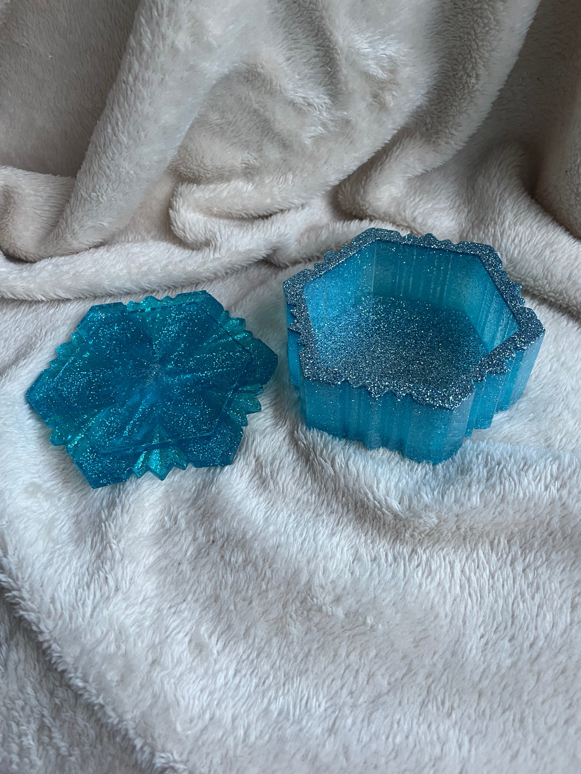Perfect om sieraden, kleine edelstenen, theelichtjes of andere waardevolle items in te bewaren. Dankzij de glanzende epoxy en het verfijnde design schittert het bakje prachtig in het licht, alsof het echt uit ijs is gehouwen.