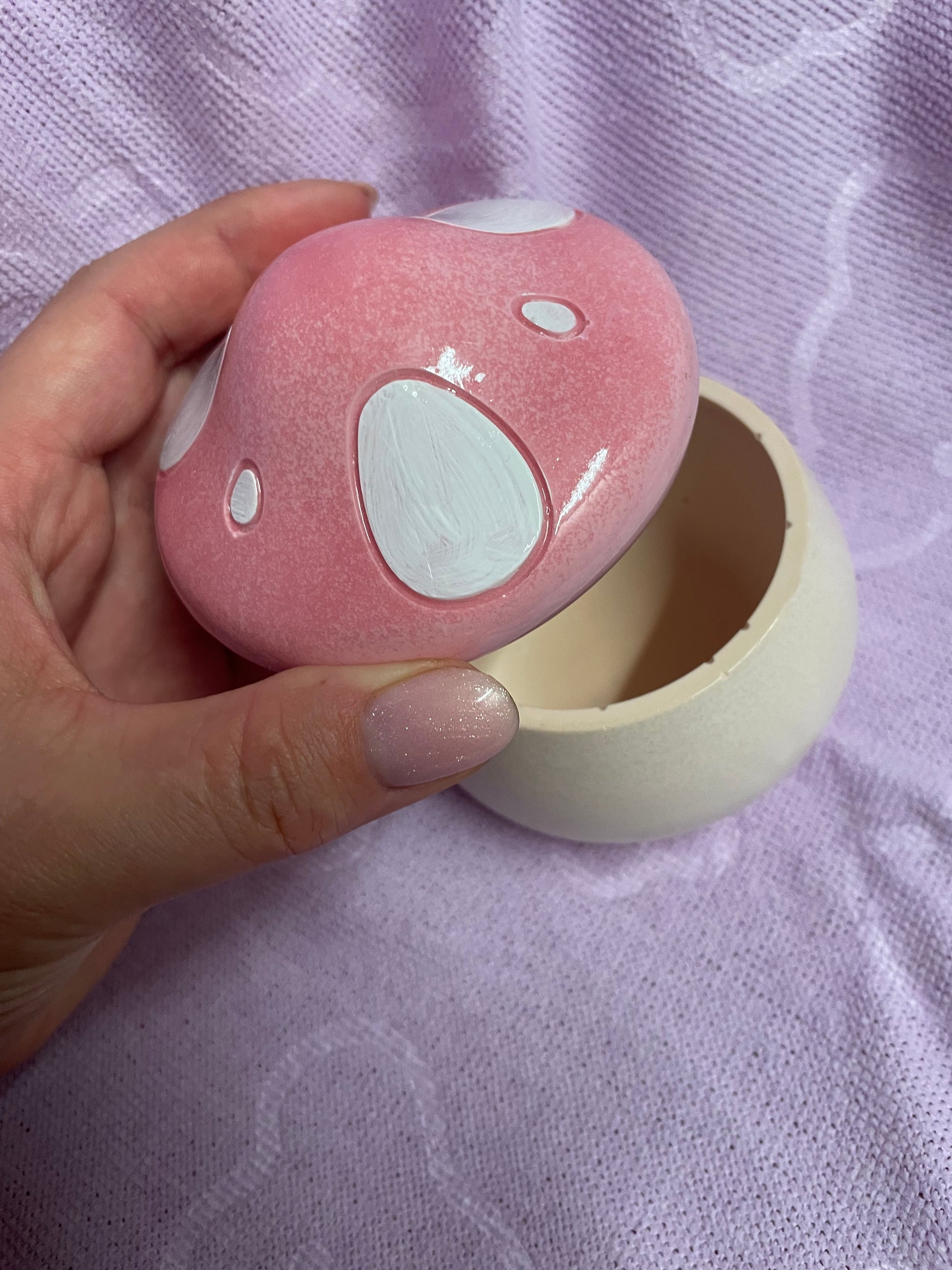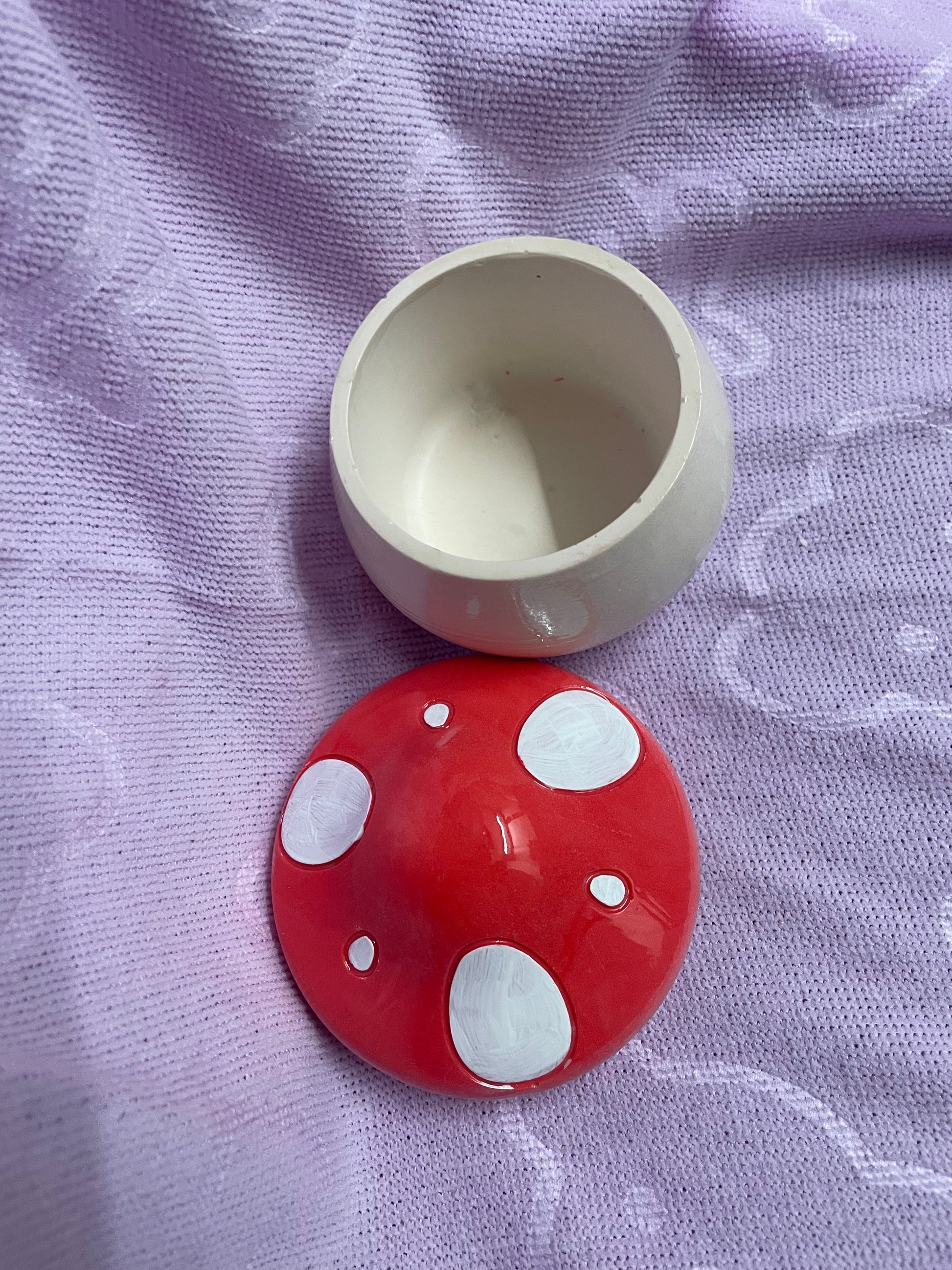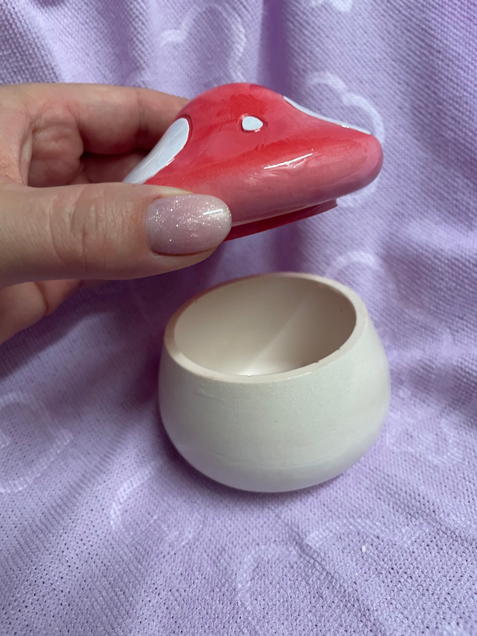 Het charmante ontwerp in de vorm van een paddenstoel maakt het een echte blikvanger — perfect om kleine spulletjes in te bewaren, zoals sieraden, kruiden, haarspeldjes of andere kleine schatten. Dankzij het stevige materiaal en de glanzende afwerking voelt het potje luxueus aan en blijft het jarenlang mooi.