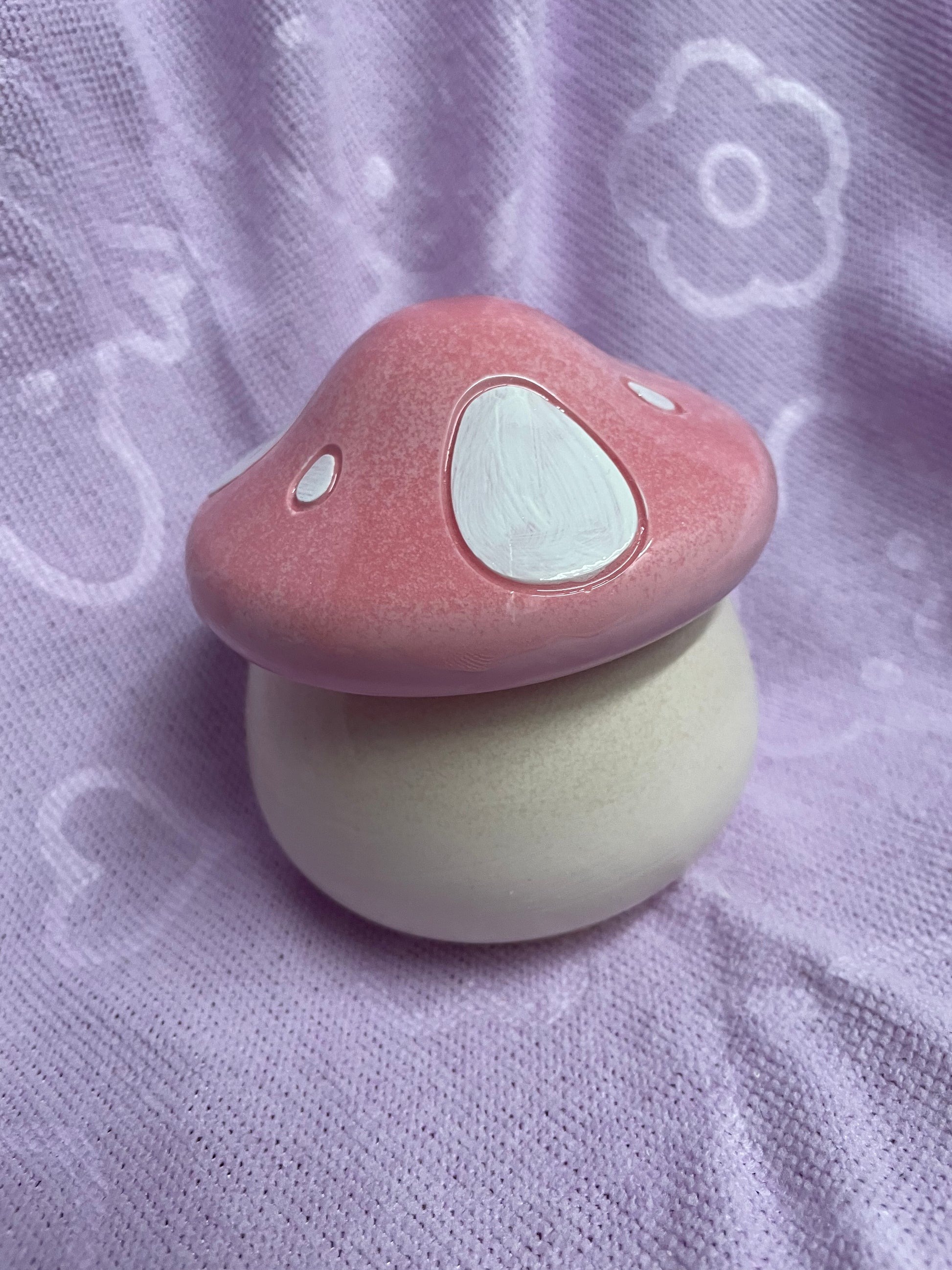 - Vormgegeven als een paddenstoel met afneembare deksel
