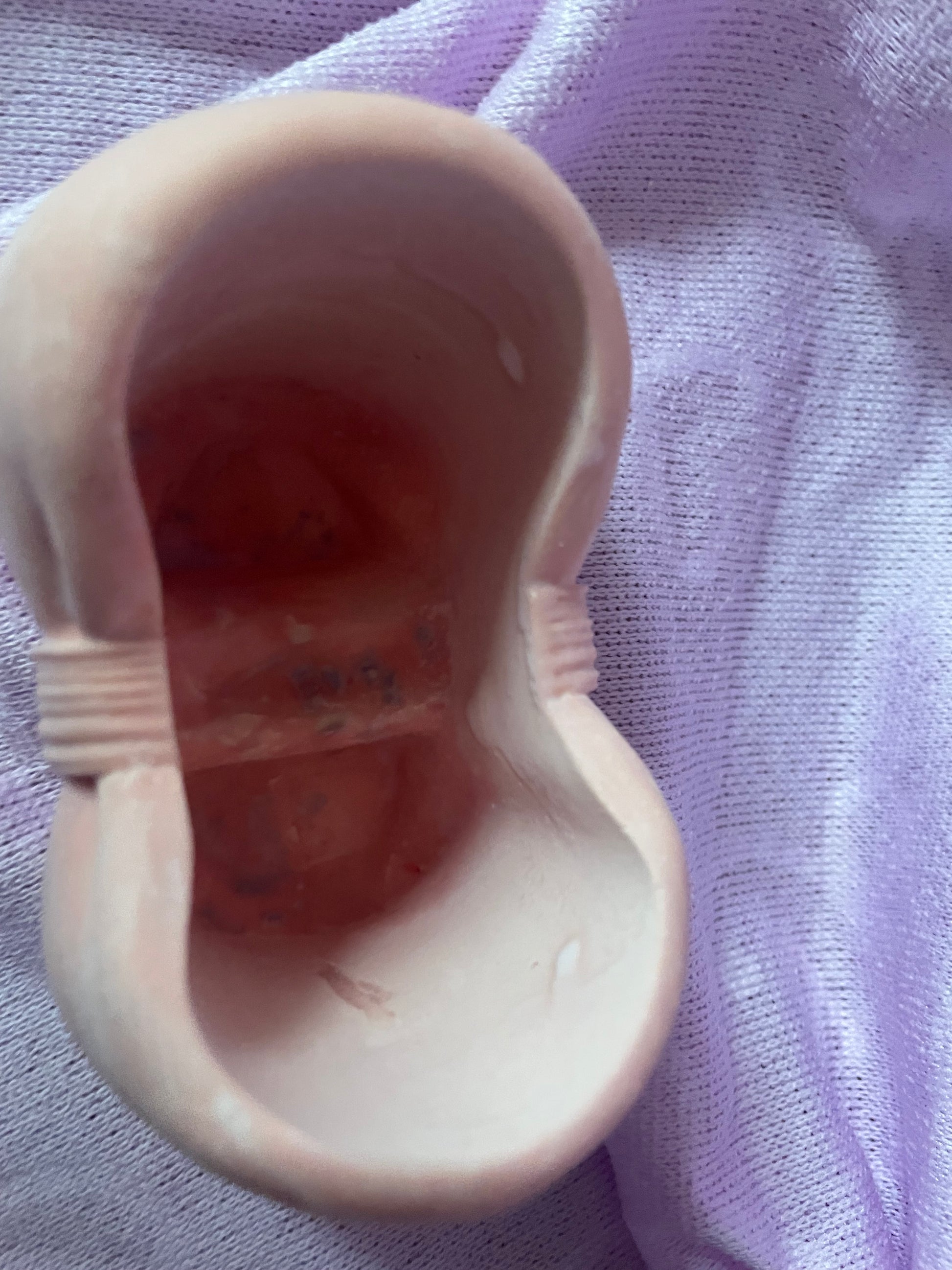 LET OP: dit is een Flawesome find dus dit potje heeft een flaw; aan de binnenkant zie je wat paarse vlekjes. Aan de buitenkant zijn ze niet te zien, dus aan de buitenkant is deze lichtroze en perfectly fine