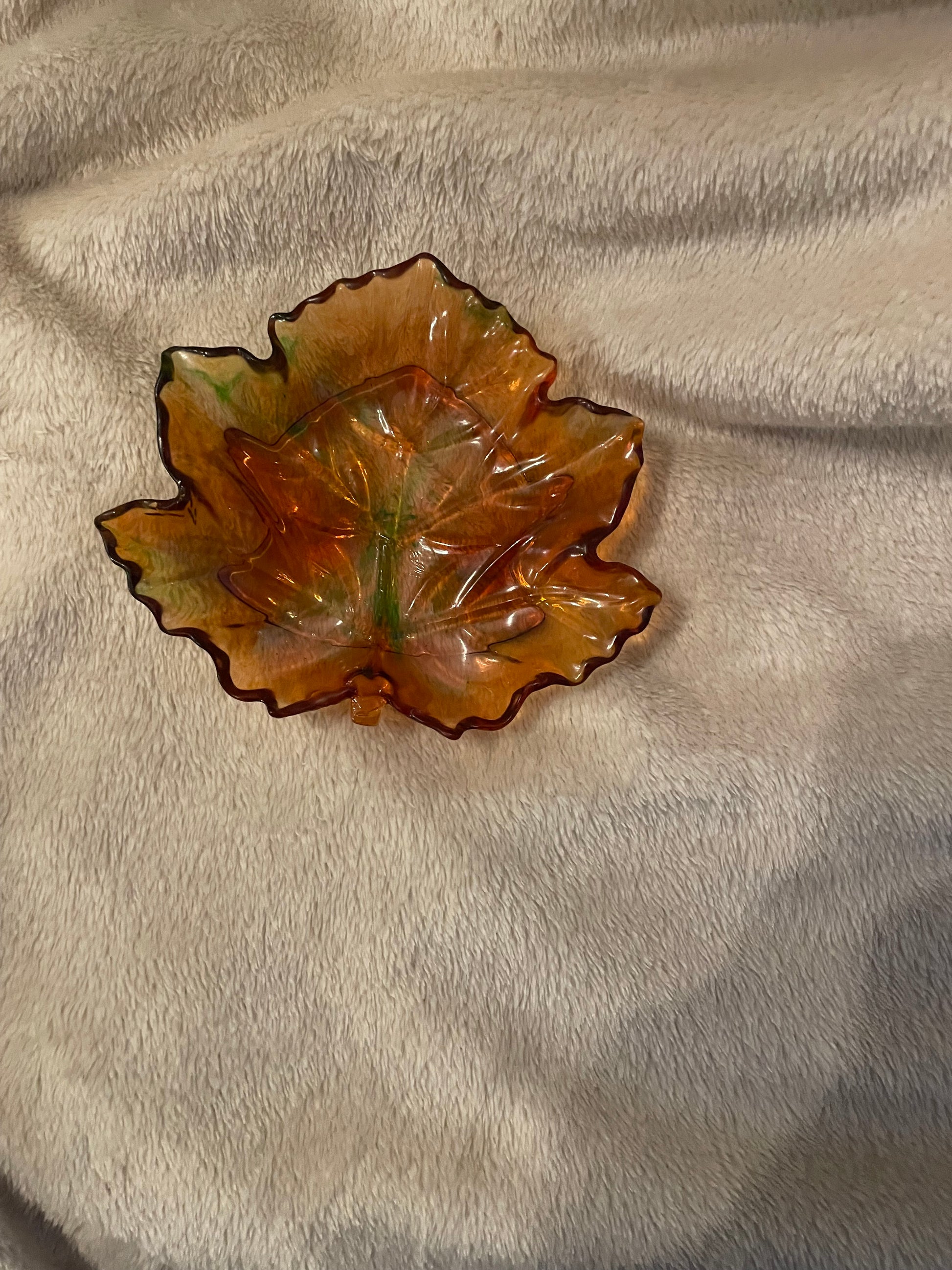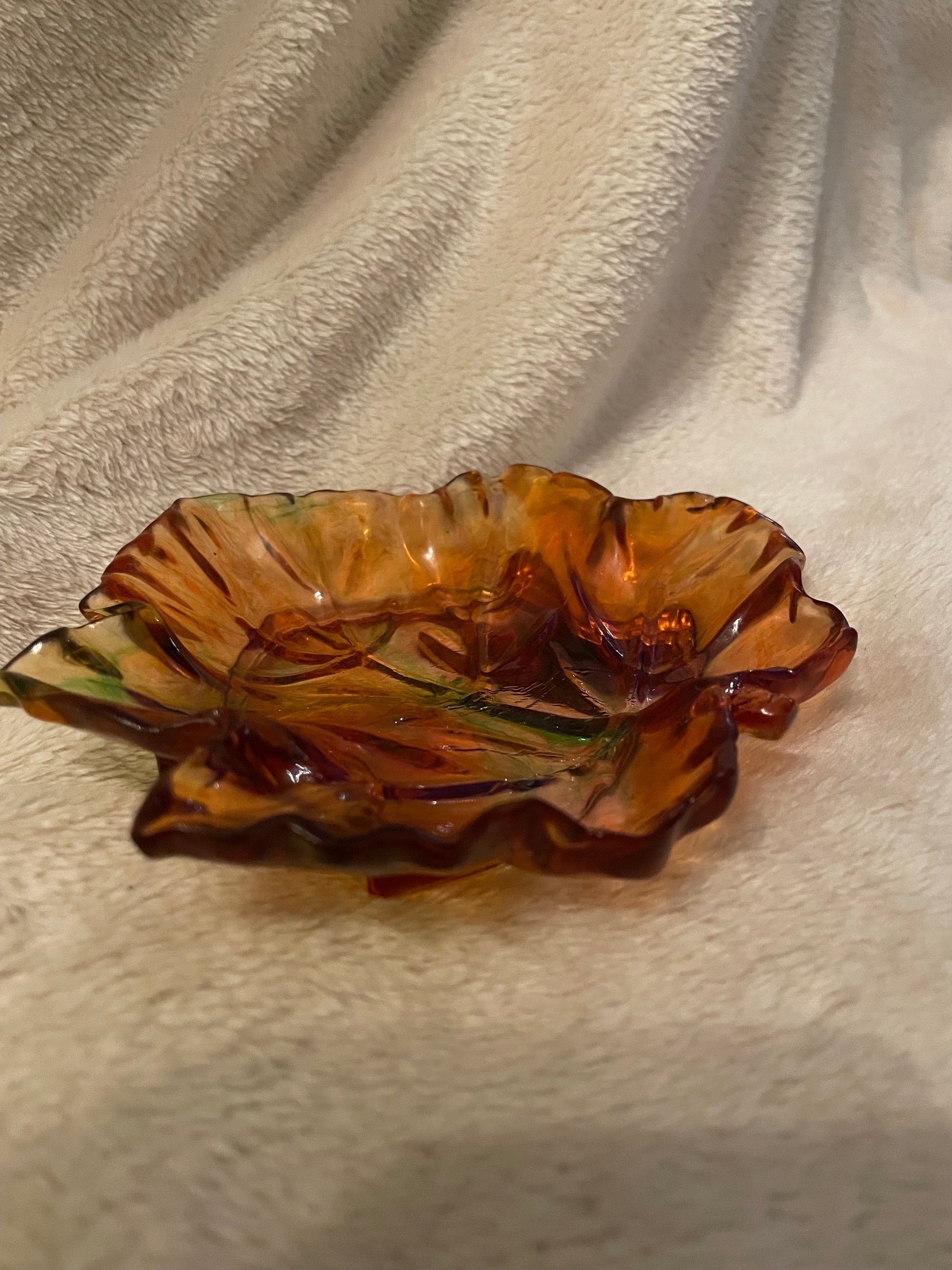 Breng de warme kleuren van de herfst in huis met dit handgemaakte epoxy schaaltje in de vorm van een herfstblad. De combinatie van oranje-, amber- en groentinten zorgt voor een prachtige, natuurlijke gloed — alsof het blaadje net van de boom is gevallen. Wil je nu liever een andere kleuren combi, laat dat even weten in de opmerkingen