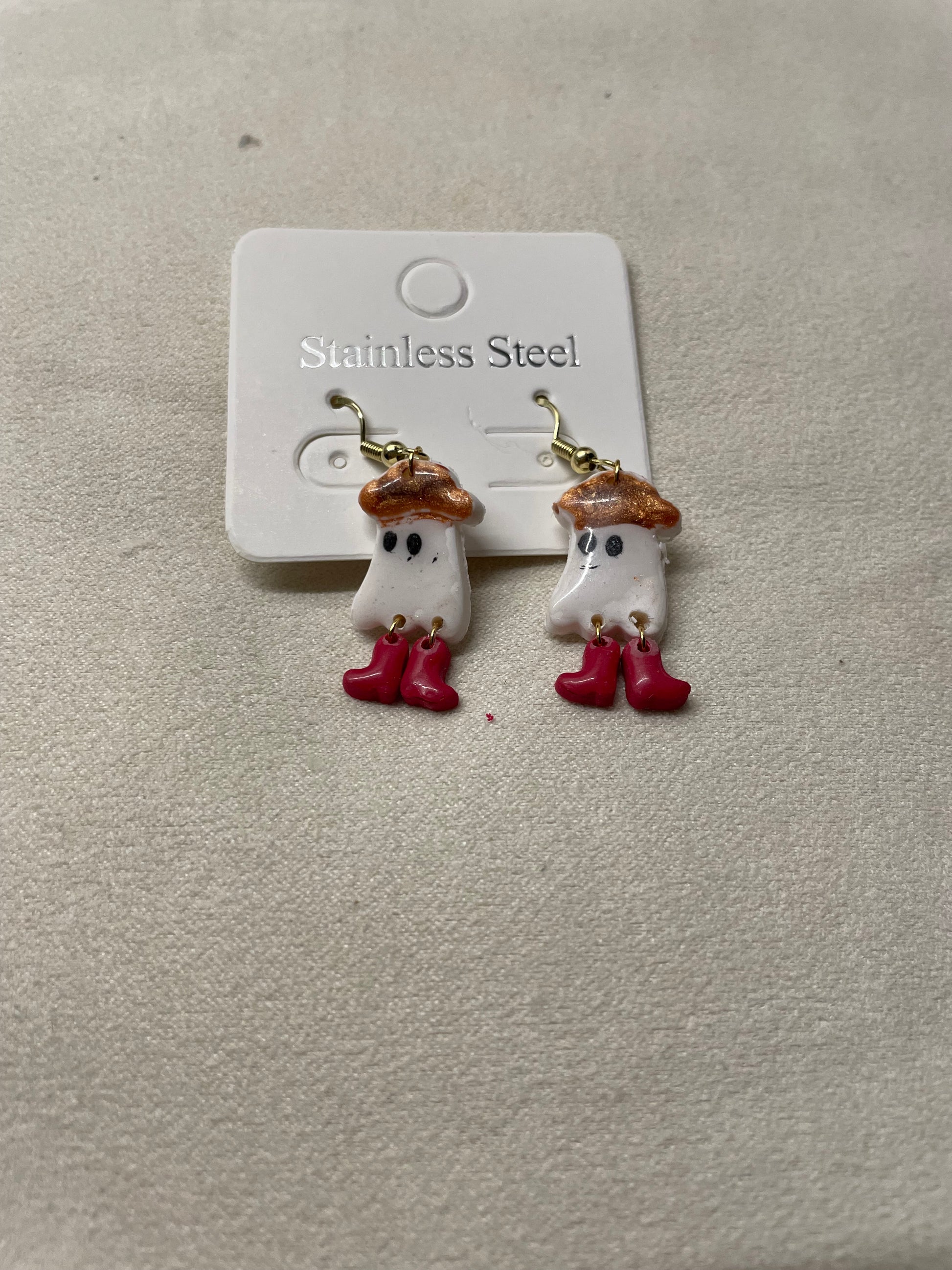 - Handgemaakte epoxy oorbellen in de vorm van een cowboy spook met laarsjes
