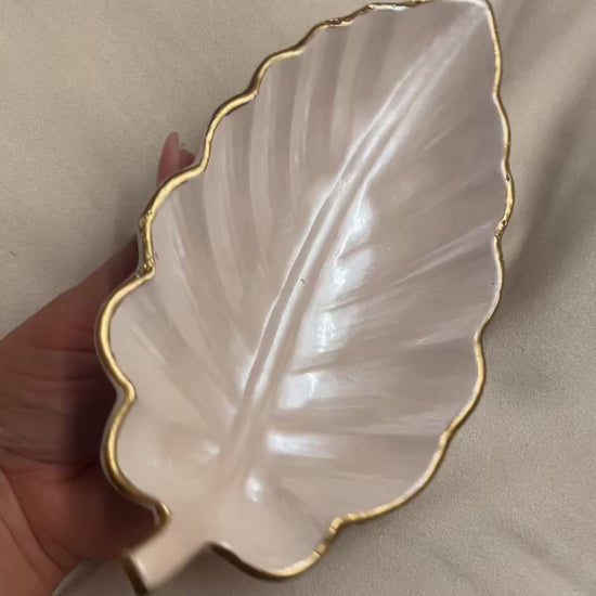 Dit handgemaakte schaaltje van Acrystal is geïnspireerd op de natuurlijke vorm van een blad en afgewerkt met een subtiel gouden randje. De zachte glans en verfijnde details maken het tot een stijlvol decorstuk dat in elk interieur tot zijn recht komt.